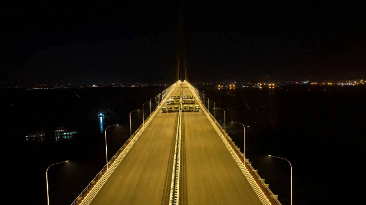 6月17日凌晨,世界最大跨度斜拉桥——江苏常泰长江大桥公铁合建段顺利启动桥梁荷载试验,这座由江苏省交通工程建设局建设、中交二航局参建的世界级大桥迎来通车前的“关键大考”。